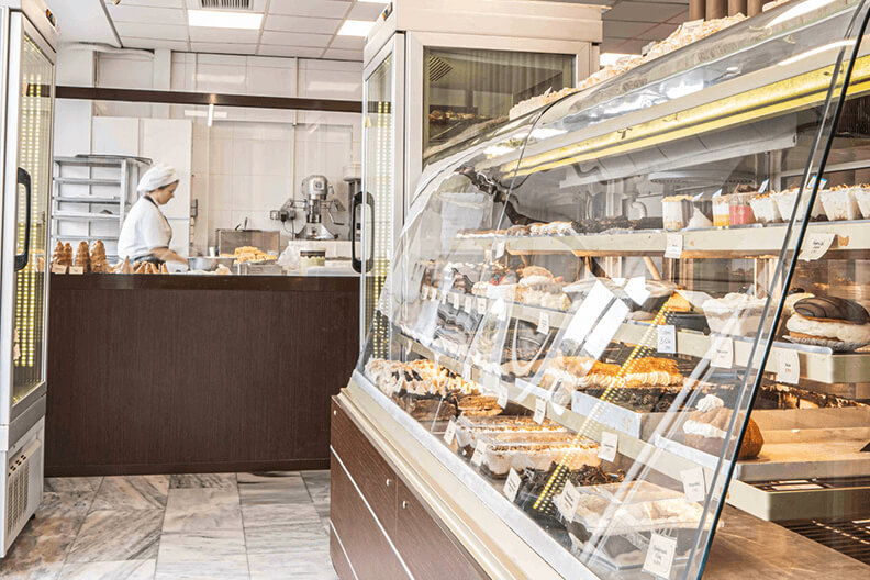Στα ανοιχτά εργαστήρια κάθε καταστήματος, με χειρουργική καθαριότητα παρασκευάζονται τα περίφημα γλυκά μπροστά στα μάτια του πελάτη, ο οποίος έχει την ευκαιρία να συμμετέχει στην απολαυστική διαδικασία δημιουργίας τους.
